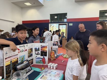 The World’s Fair culminated in a vibrant, community-wide event where students proudly presented their work to peers, families, and faculty. The MPR was transformed into interactive exhibits, filled with colorful displays, engaging websites, and enthusiastic student presenters eager to share what they had learned. Many students even dressed up to represent their countries, adding another layer of excitement and cultural immersion to the experience. A highlight of the event was the opportunity for students to prepare and share food from their countries, which was a huge hit with everyone in attendance and created a memorable, hands-on cultural experience.